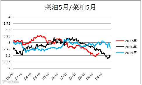 2、 油粕比震荡,市场整体上呈现外强内弱,粕强油弱的格局,油脂基本面压力始终没有得到有效缓解,建议进行买粕抛油的套利操作。