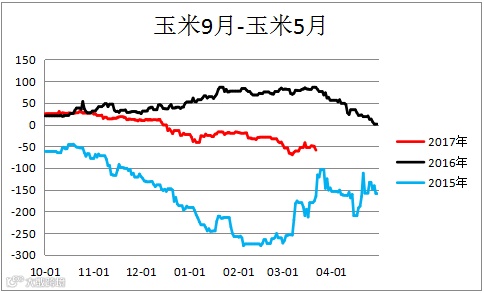 玉米跨期价差(C1809– C1805)小幅震荡。