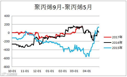 聚丙烯跨期价差(PP1809 – PP1805)震荡偏强。