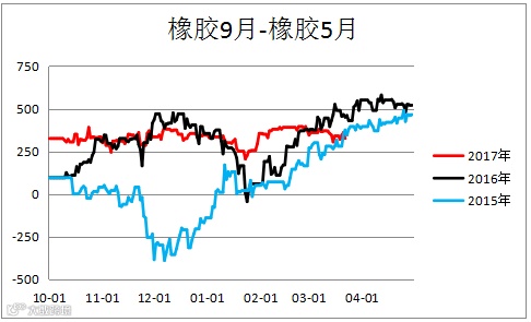 天然橡胶跨期价差(RU1809– RU1805)小幅震荡。