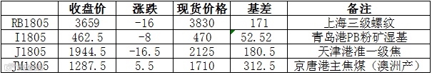 操作上,成材、铁矿维持震荡偏空思路;套利方面,关注铁矿卖5买9套利机会以及远月1810合约的卷螺价差扩大机会。