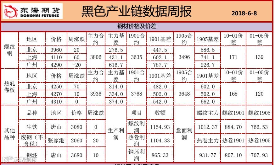 黑色产业链数据周报(2018.06.11)