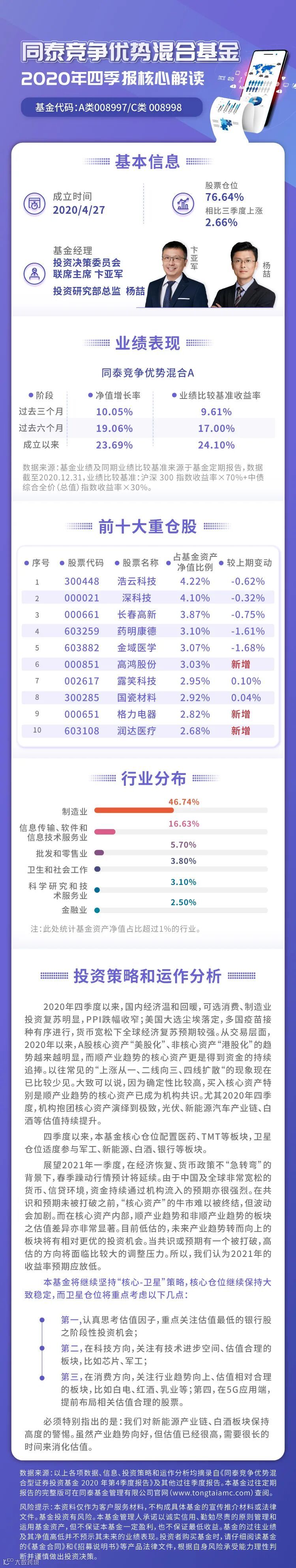 导读:同泰竞争优势混合基金2020年四季报核心解读