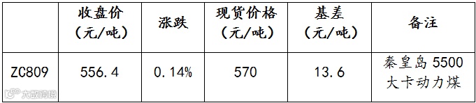 昨日动力煤主力合约ZC809开盘于555.8元/吨,最高558元吨,最低549.4元/吨,报收于556.4元/吨。较前一交易日上涨0.6元/吨。