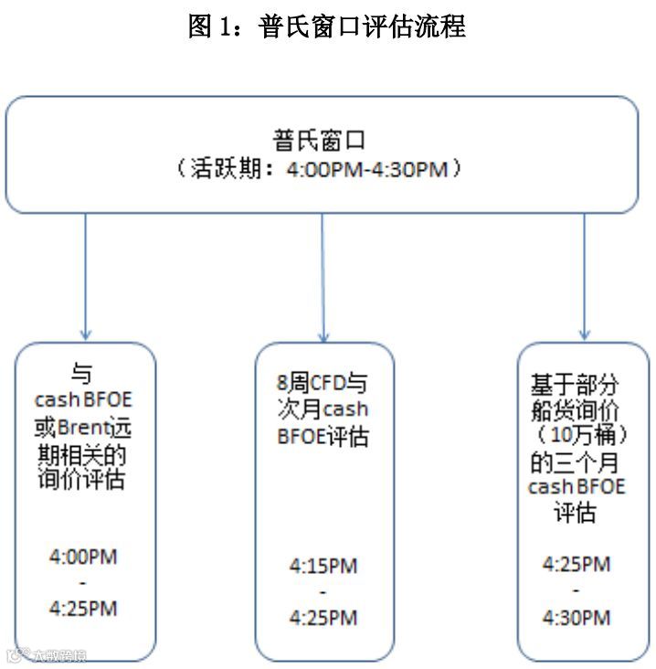在绝大多数情况下,Cash BFOE 一般在 4:10 分之前上报,在 4:25 分之前都可以修改价格。评估则会在时间窗口的最后五分钟即 4:25 至 4:30 进行,在窗口关闭前的报价和询价都可以修改。10万桶的交易单位在窗口中所占比例最高,60 万桶的大合约通常会在 ICE 期货合约到期当天被交易。