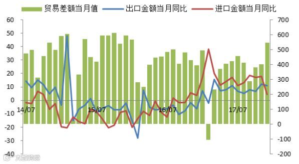以美元计,中国进出口数据情况: