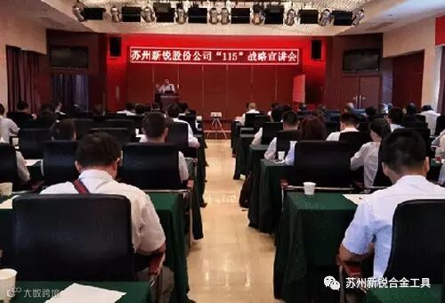 7月14-15日,苏州新锐合金工具股份有限公司2017上半年总结分享暨“115”战略宣讲会在武汉蔡甸区隆重召开。会议由股份公司副总裁胡中彪先生主持,公司全体领导干部以及各业务单元的年轻骨干员工共计90余人参加了会议。
