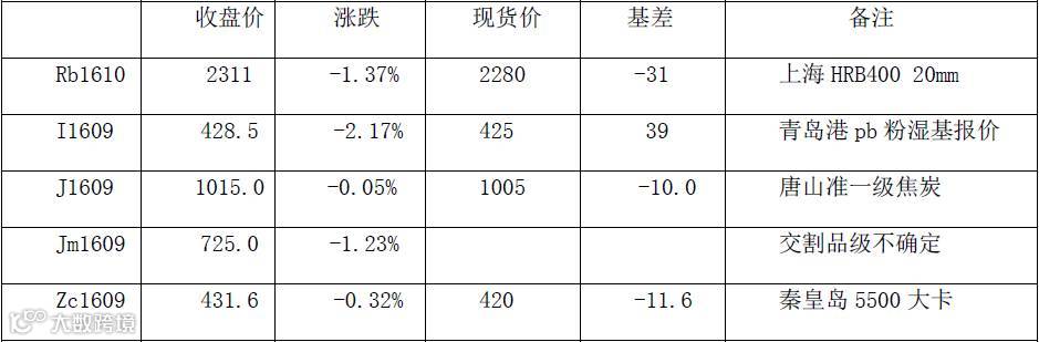黑色系期货周一整体保持着小幅震荡调整的走势,各品种走势之间有所分化,后续整体走势或将会继续分化。整体来看原料系走势偏强一些,焦炭、铁矿石基本面偏强一些,走势也相对坚挺。螺纹仍处于消费淡季压抑,走势相对趋弱。动力煤由于一直在高位,技术面上压力仍较大,仍顺延高位横盘震荡整理走势。目前来看,整体上档的压力依然存在,估整体短期仍将要会延续宽幅区间震荡走势,各品种将会进一步分化。