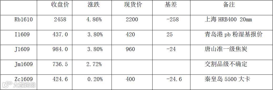 黑色系期货价格整体仍维持略偏强的震荡反弹走势,螺纹由于供货量增加,短调后市场利用宏观消息面的宽松刺激炒作,大幅走强。铁矿期货亦跟随上涨,期货与现货价差收敛,目前期价表现最强。焦煤、焦炭跟随螺纹钢走强。动力煤维持高位震荡,临近月底前期提价利好落地。