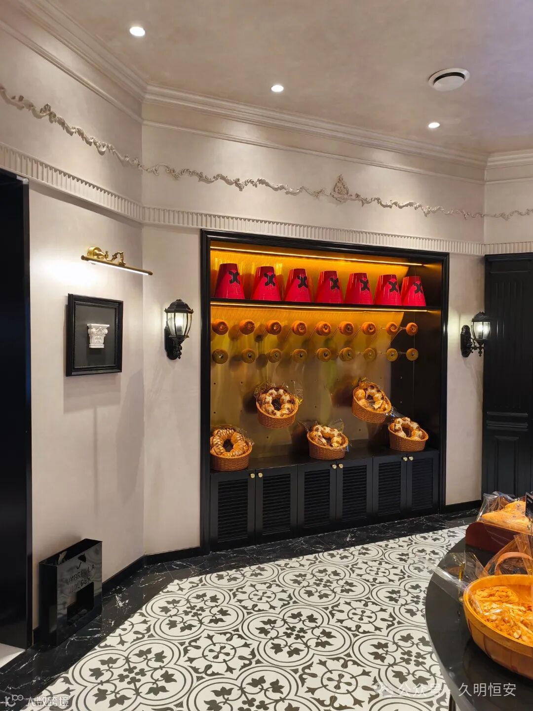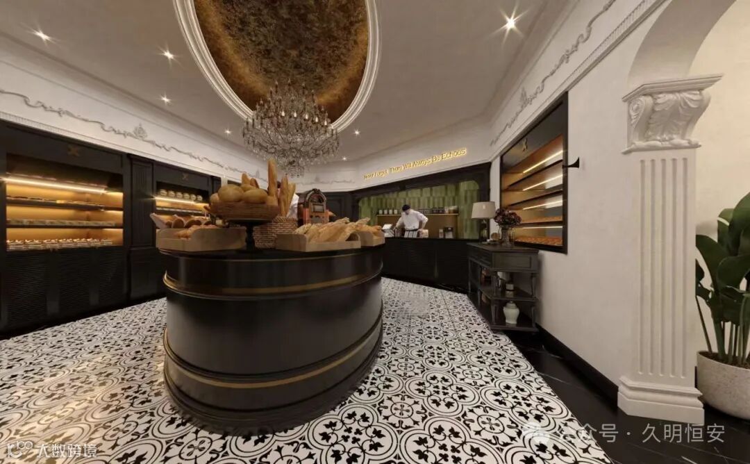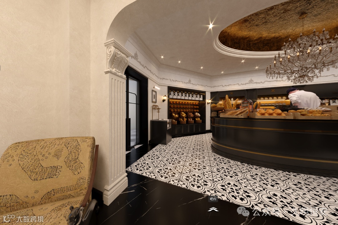 整体色调以黑白为主,地面的黑白花纹瓷砖与柜台与店铺整体风格相呼应,增加了空间的视觉趣味性和复古感。