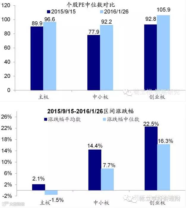 这个过程中个股开始分化,相比2015年8-9月虽然上证已经创新低,主板、中小板、创业板的个股PE中位数分别为96.6、92.2、105.9倍,高于当时的89.9、77.9、92.8倍,中小创个股股价相比当时仍高10%-20%。如果市场出现转机,个股特征可能与2015年9-11月不一样,当时仍是主题概念类小市值公司更强,还是在牛市的幻想中提高风险偏好,半年三次股灾后,市场心态已发生根本性变化,加上蓝色光标的案例,未来望更注重业绩的成长。因此,当下调结构,不失为退而结网。