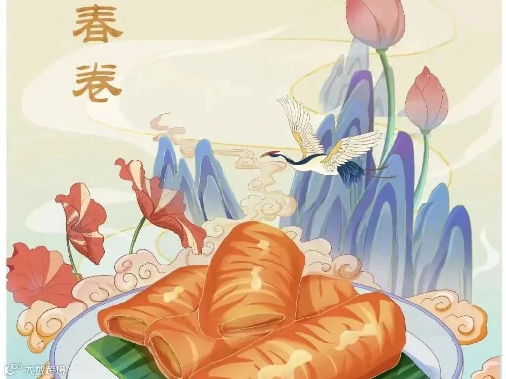 春卷与春饼类似,不同的是春饼可以直接吃,春卷是用薄饼皮包馅并将两头包住,放入油锅里炸至外焦里嫩食用。