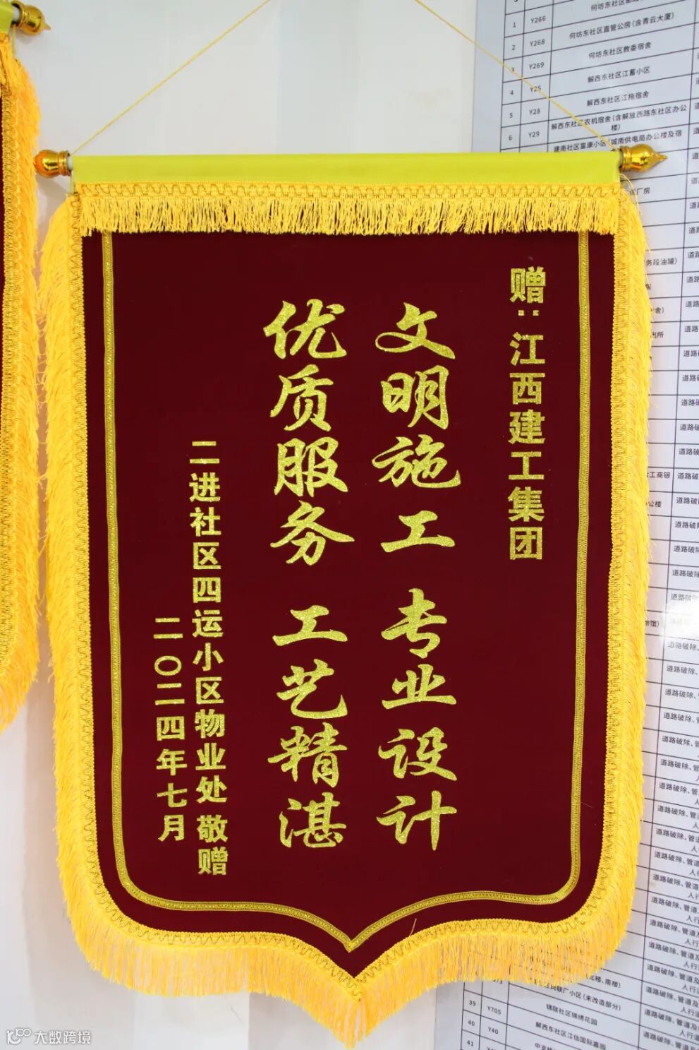 从2024年3月开工至今,近6个月的时间里,项目部收到了来自施工单元的居民、物业等送来的11面锦旗。