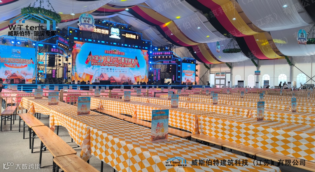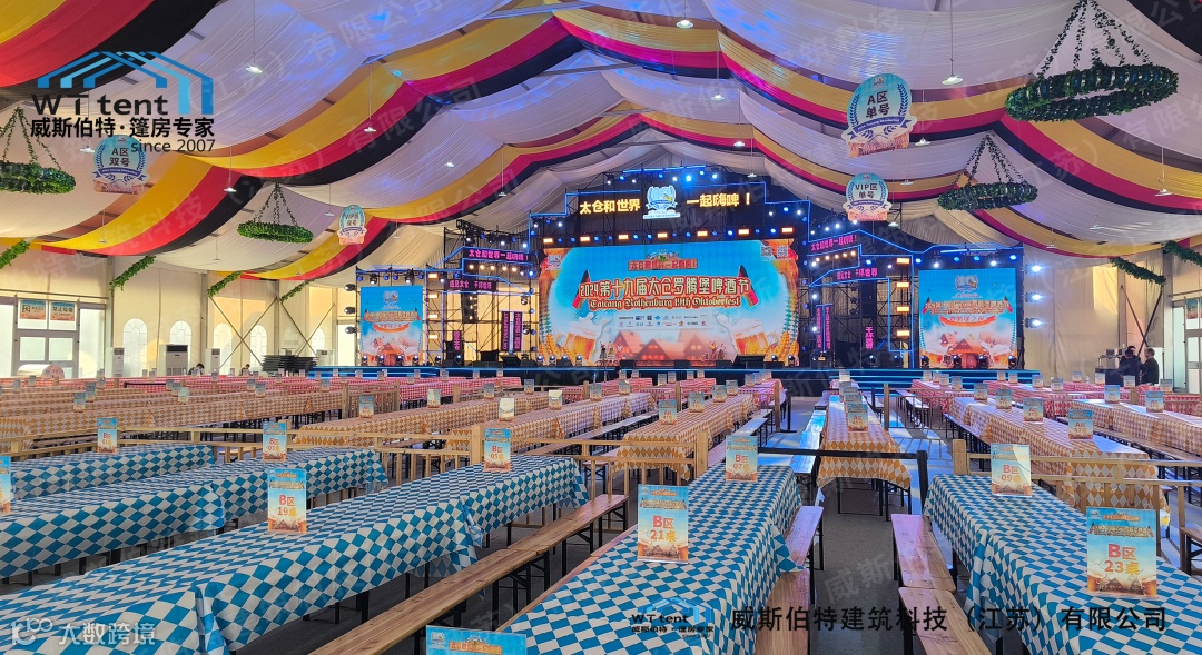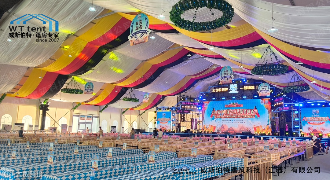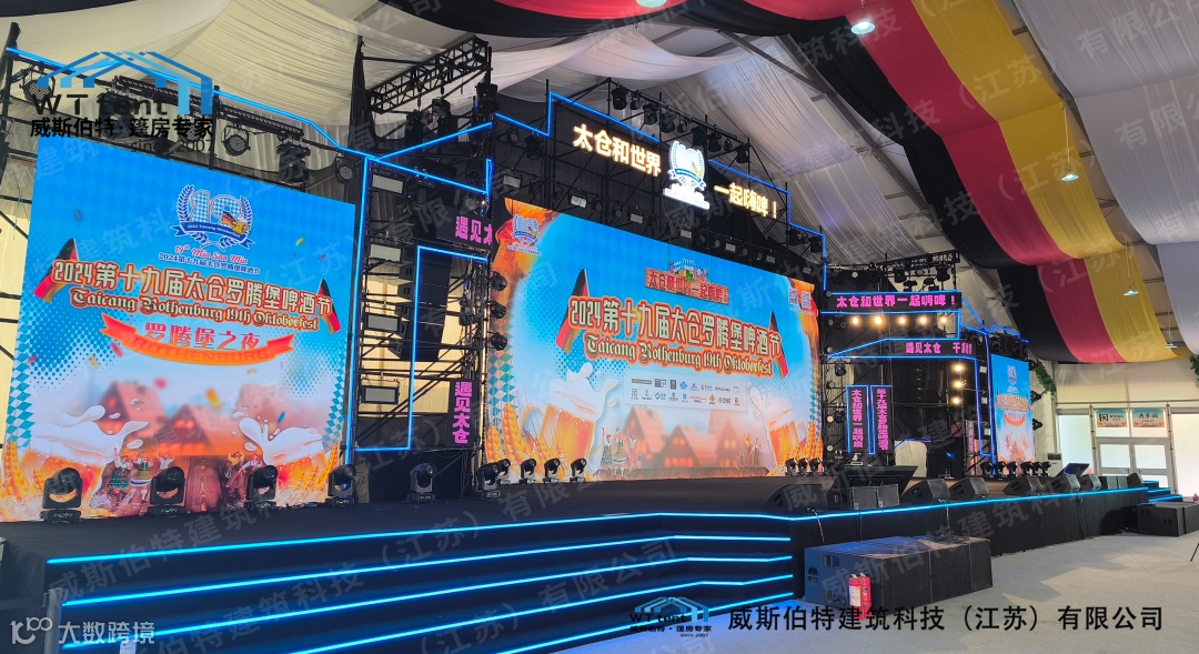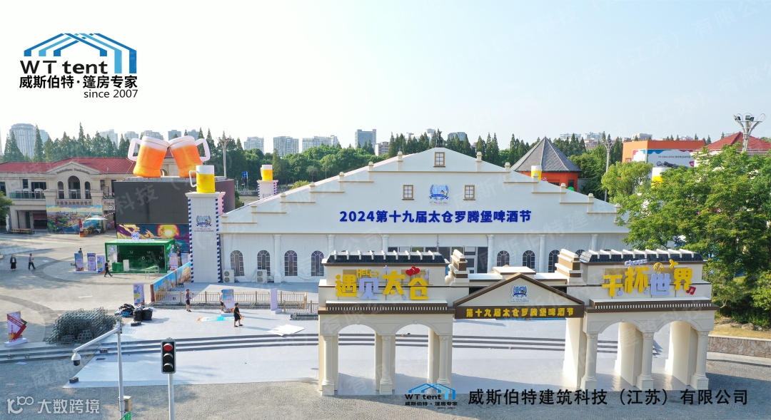 威斯伯特已连续多年为太仓啤酒节提供篷房搭建及临建设施服务,以专业的项目团队保障每一次啤酒节活动,让每一个盛夏的夜晚都激情难忘!