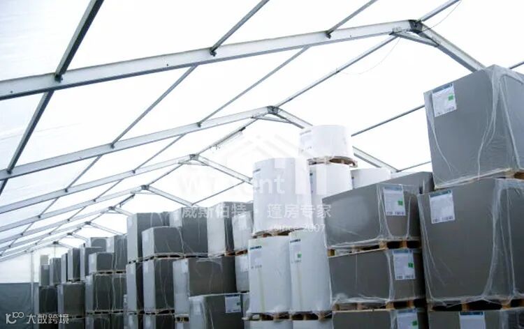 公司库存篷房:跨度(宽度)从3m-70m,长度按照3m/组或5m/组无限增加。边高2.6m-12.5m不等。具有防火,挡风、牢固可靠等性能。