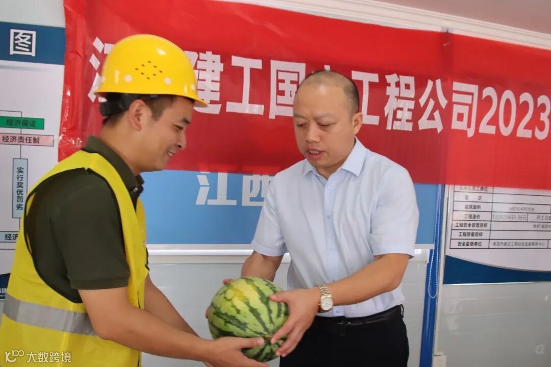 7月28日,江西建工国内工程公司党委副书记、总经理枚东华,副总经理李红来到兰宫路学校新建工程EPC总承包项目现场,看望慰问高温下坚守岗位的项目一线管理人员和建筑工人,并为他们送上了西瓜、沐浴露、牙膏及花露水等“清凉”物资。