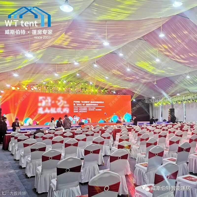 产品主要有:尖顶、人字顶、球形、弧形、拱形、桃型及各类异形篷房。我们的活动篷房、仓储篷房、婚庆篷房、展会篷房被广泛应用于家庭聚会、商务会议、展会展览、大型庆典、仓储物流、救灾检查等场景中。篷房中间无任何支柱,场地100%使用。