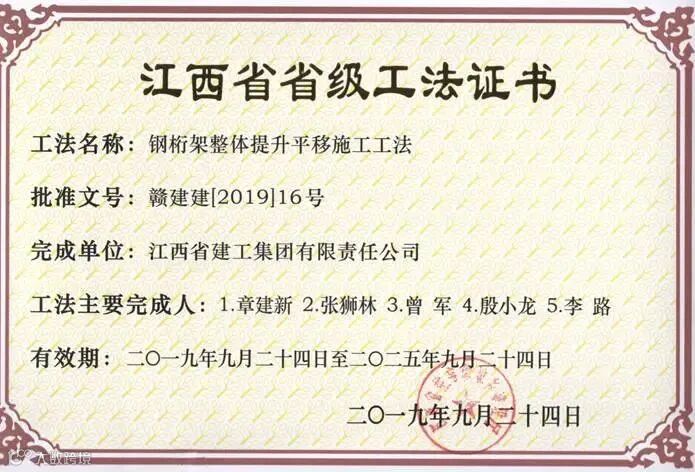 在项目施工过程中,公司应用了住建部推广的“建筑业十项新技术”中的9大项、20个子项,取得科技进步效益975.8 万元,新技术应用达到国内先进水平。总结形成QC成果4项,形成“钢桁架整体提升平移施工工法”等省级施工工法4篇,《一种混凝土养护铺设结构》等实用新型专利4项,被评为江西省建筑业新技术应用示范工程。推行绿色施工措施43项,获得经济效益达957.3万元,绿色施工评价获江西省一等水平。项目建设中还融入了BIM+智慧建造决策系统,建设扬尘在线监测、视频监控、实名制管理系统三大“智慧工地”基础功能和AR巡检、VR安全教育等多项扩展功能,完成从公司到项目基层的全过程、全方位智慧化监管,获评江西省首届BIM技术应用示范工程。