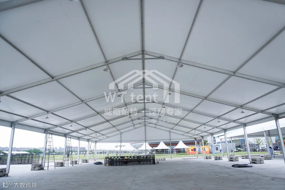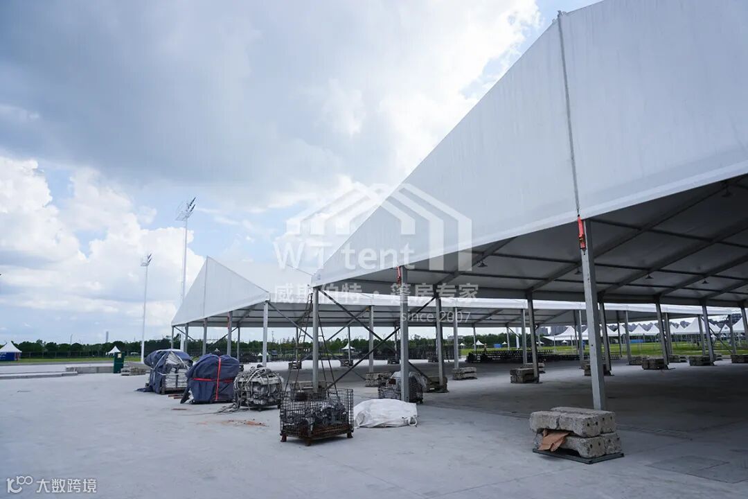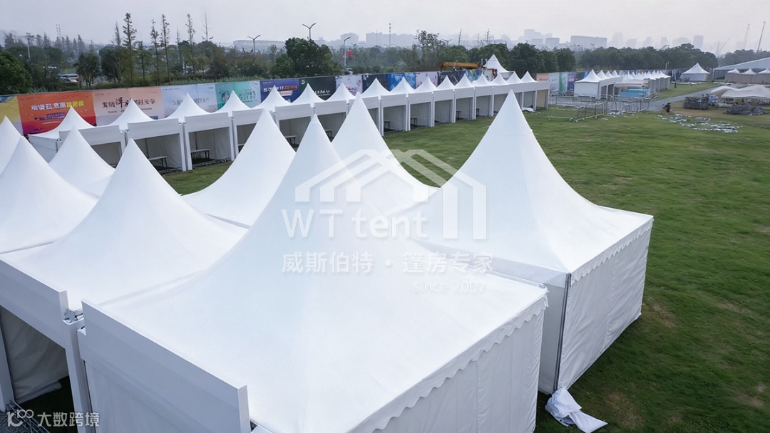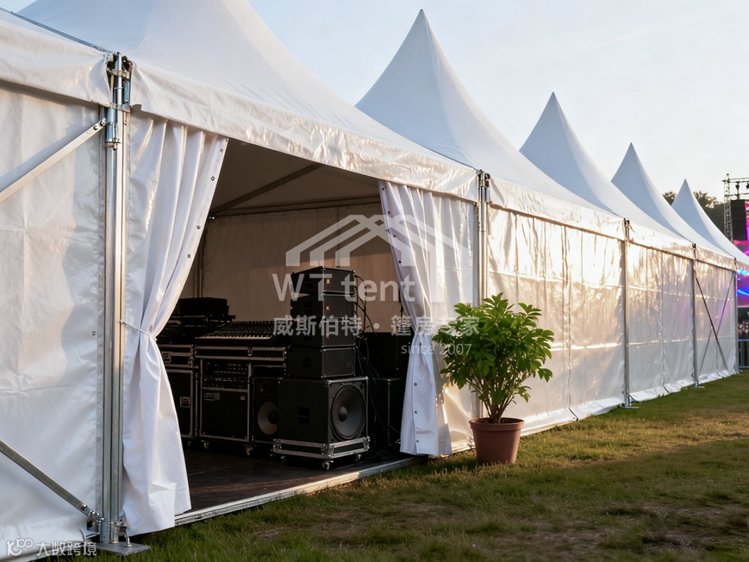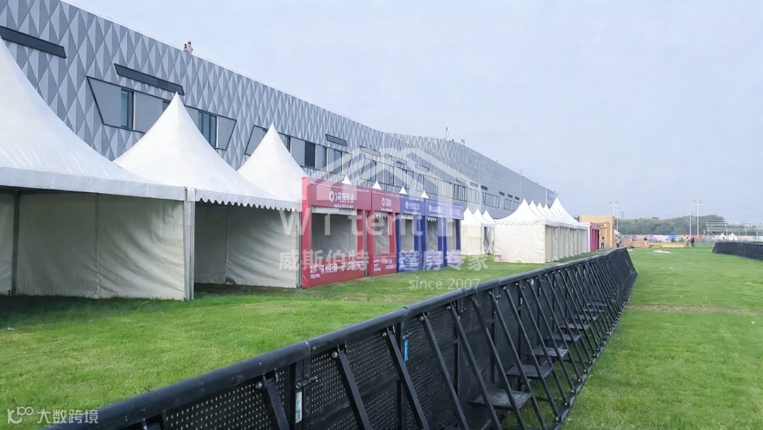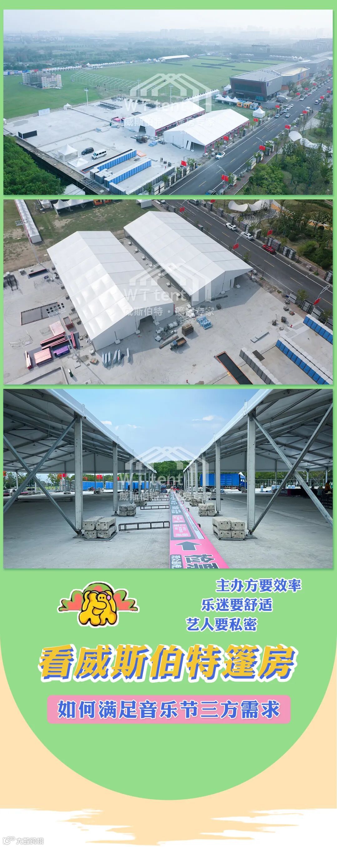 在即将开幕的大型音乐活动场地里,露天舞台轮廓初显,威斯伯特定制的装配式功能篷正由施工团队逐步组装。它们虽非舞台主结构,却是支撑狂欢的 “功能核心”。