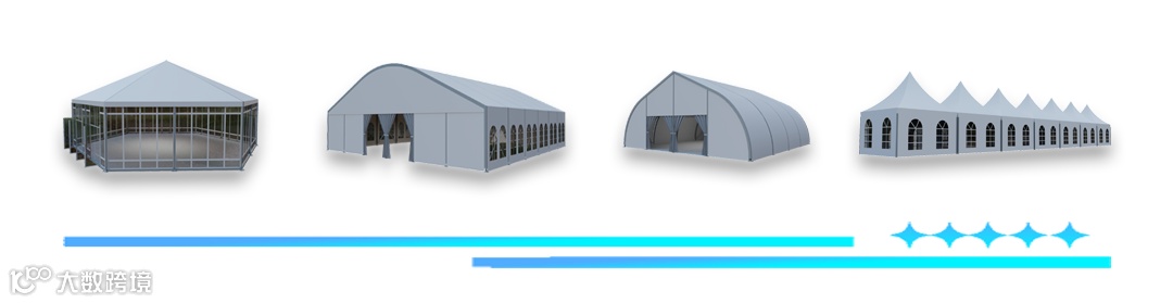 产品主要有:尖顶、人字顶、球形、弧形、拱形、桃型及各类异形篷房。我们的活动篷房、仓储篷房、婚庆篷房、展会篷房被广泛应用于家庭聚会、商务会议、展会展览、大型庆典、仓储物流、救灾检查等场景中。篷房中间无任何支柱,场地100%使用。