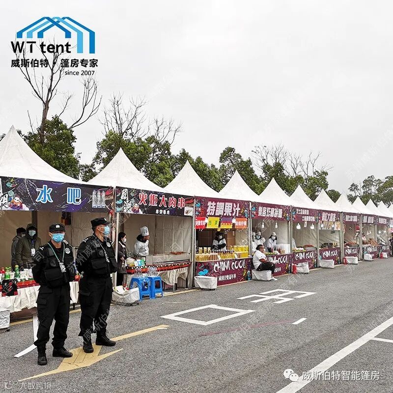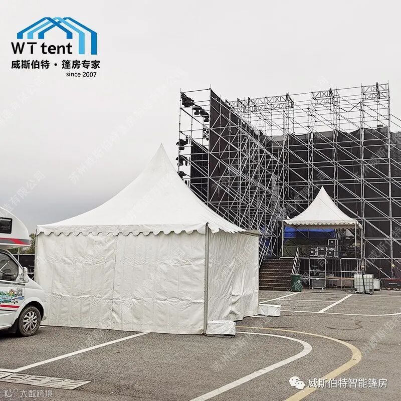 锥顶篷房以其快速拆搭、轻便美观,用来当做安检篷房是活动客户非常青睐的方案。