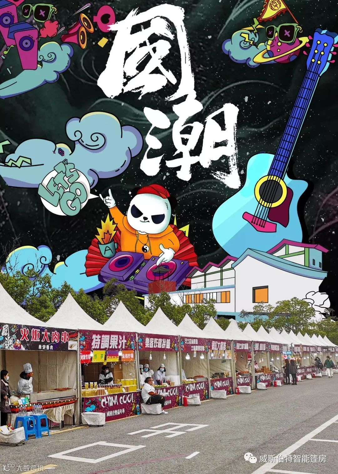 音乐节持续时间久,粉丝体力耗费大,需要用美食补充回流失的能量。威斯伯特为此次音乐节搭建了55座锥顶篷房,为现场粉丝打造了一条独具特色的美食街。