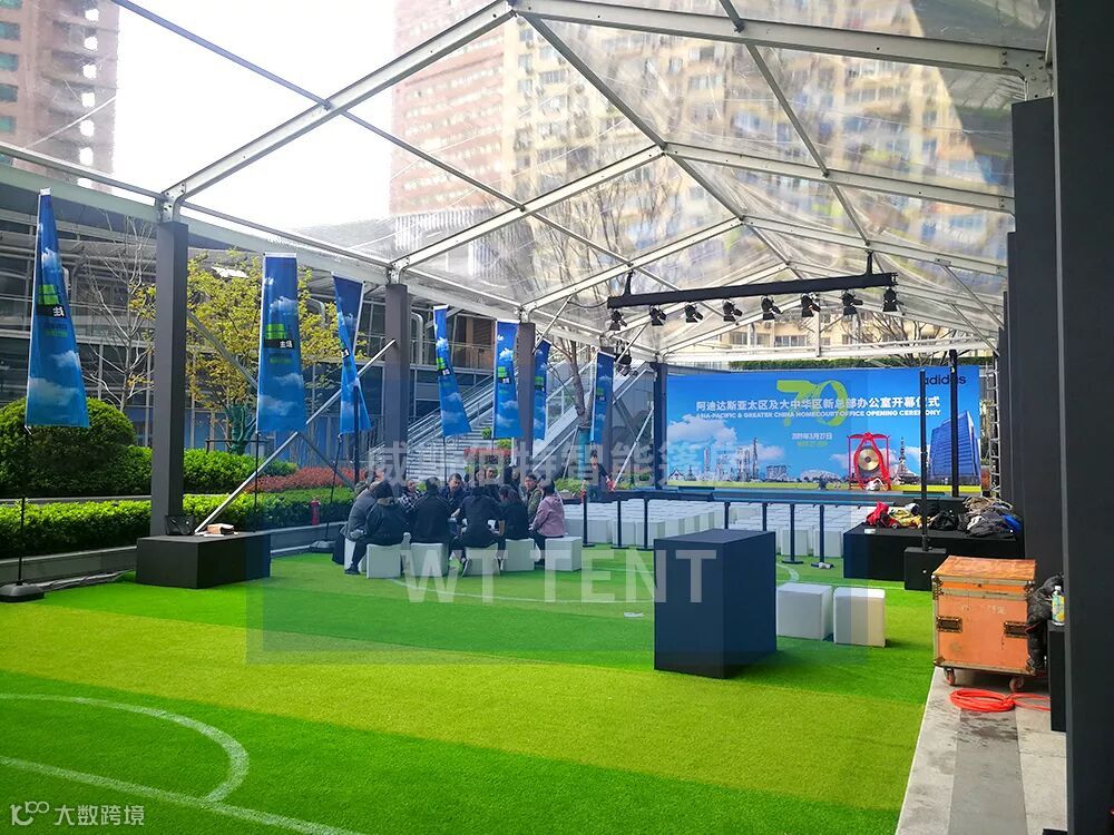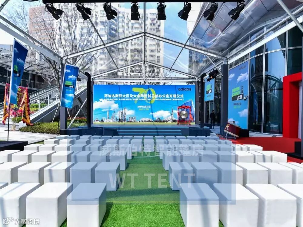 阿迪达斯亚太区及大中华区总部 Home Court 一片锣鼓声中正式揭幕。威斯伯特智能篷房作为这次活动的篷房制造商和施工服务商,有幸和阿迪达斯全体员工和贵宾共同见证了这一阿迪达斯企业历史上重要的一刻。