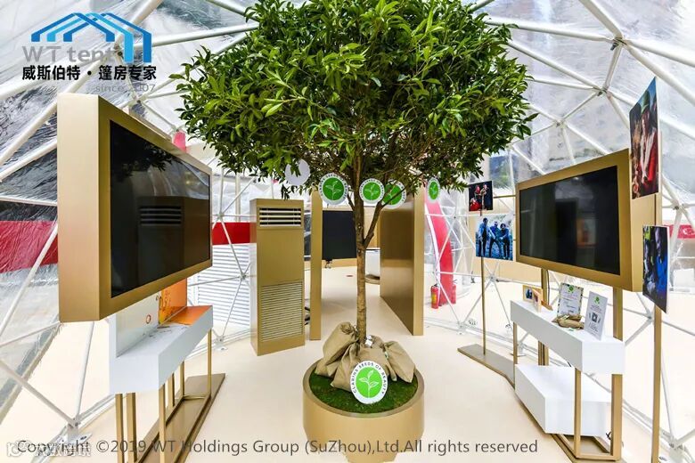 此次之所以采用装配式篷房作为体验馆,不仅仅是因为篷房快速的搭建效率,主办方更多的是考虑到活动的环保问题,搭建篷房时几乎不产生粉尘或者建筑垃圾,相比较钢筋水泥建筑,装配式篷房建筑有效地减少了对搭建地周边环境的污染,同时也大大降低了主办方的成本。