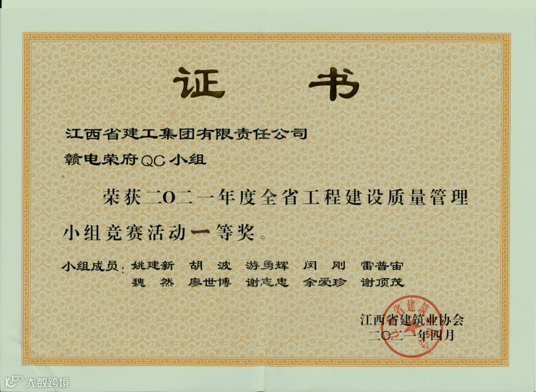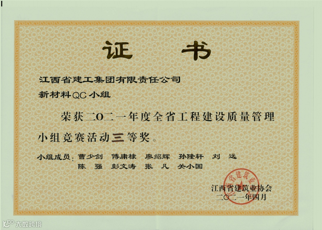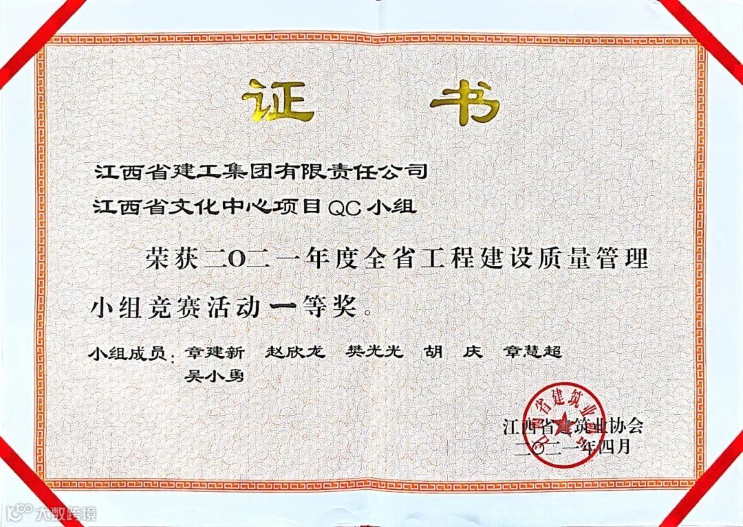 在刚刚结束的2021年度全省工程建设QC小组竞赛成果发布会上传来捷报,江西建工国内事业部申报的4项QC小组成果均获得省级奖项。其中,第四分公司江西省文化中心QC小组发布的《提高弧形钢结构成型质量合格率》和第十二分公司赣电荣府QC小组发布的《提高砂浆墙面验收通过率》两项成果获得省级一等奖,第十分公司康养QC小组发布的《提高异形变径接头验收合格率》获得省级二等奖,直属分公司新材料QC小组发布的《提高厂房设备基础预埋件安装合格率》获得省级三等奖。