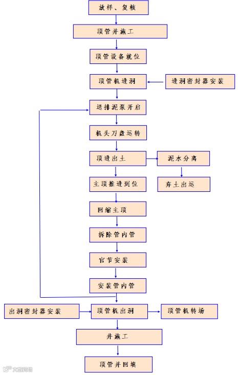 本项目泥水平衡式顶管的施工工艺图