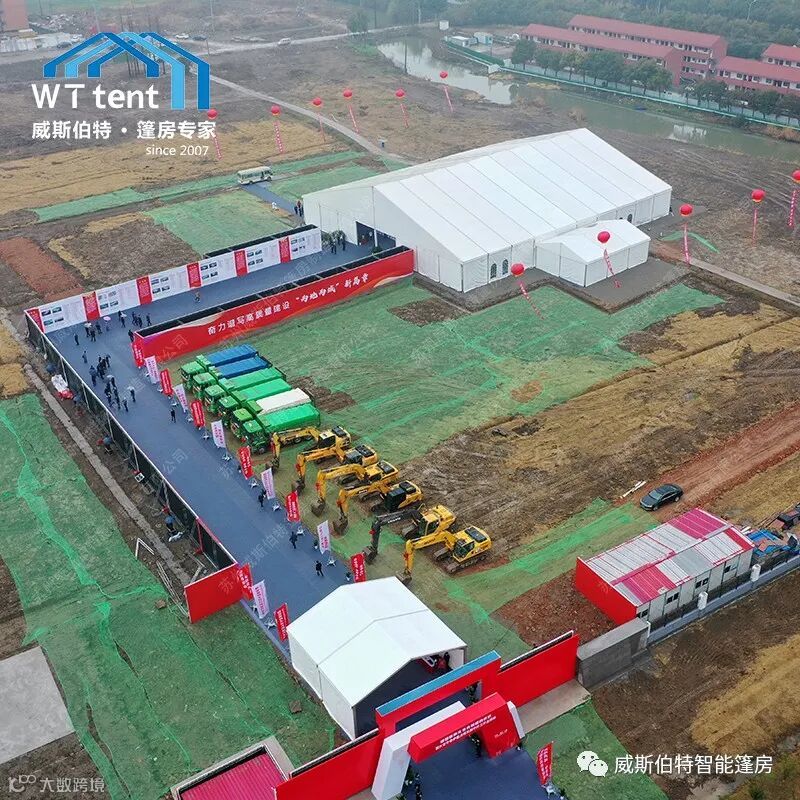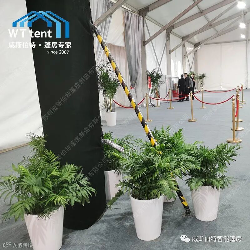 疫情防控,是当下活动必须注重的。威斯伯特在大门口搭建了一座跨度10米,长度10米,边高4米的测温篷房。注重功能的前提下,使篷房融入会场主题中。