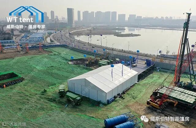 威斯伯特为此次奠基仪式选用的是M25-30-6系列的智能篷房。跨度25米、长度30米、6米边高。整体框架为热处理高强度铝合金材质,选用850g纯白双层PVC亚克力透明刀刮涂层篷布。智能篷房整体高端大气,非常适合此类临时性隆重而盛大的集会。