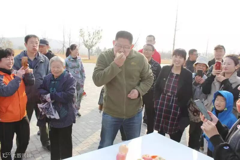 这是一场没有硝烟,只有苹果的战争.... 在这个战场上,拼实力比速度,吃的最快者获胜。比赛哨声一响,参赛选手们毛足了劲吃:双手紧握苹果转圈吃,两口并做一口,嘴里的还没咽下,又重新咬上一口………在旁边加油助威的更是不停的用力高呼,现场氛围异常火爆热烈!