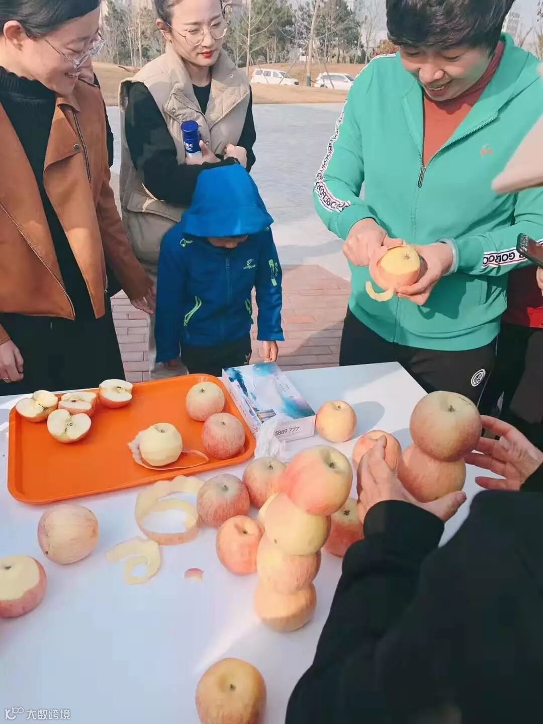 这个环节不同于吃苹果比赛,考验的不仅是速度更是精细度:在最短时间内削完苹果并保证果皮不断者获胜。比赛中,选手们有的眼疾手快,动作熟练,整个苹果削下来一气呵成,;相比之下有的选手动作则显得略微逊色——削得苹果皮时而宽时而窄,时而厚时而薄,更有甚者刚一下刀,就结束了自己的比赛……
