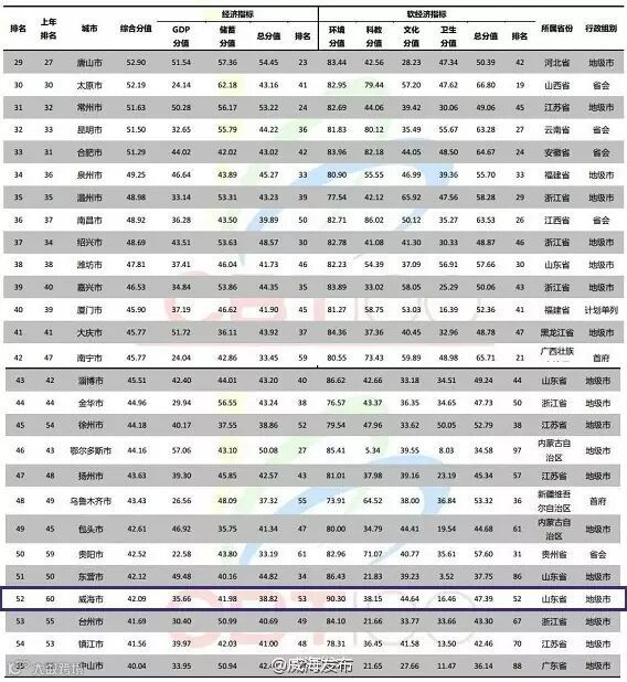 正域|2016年中国百强城市排行榜出炉 威海居52位
