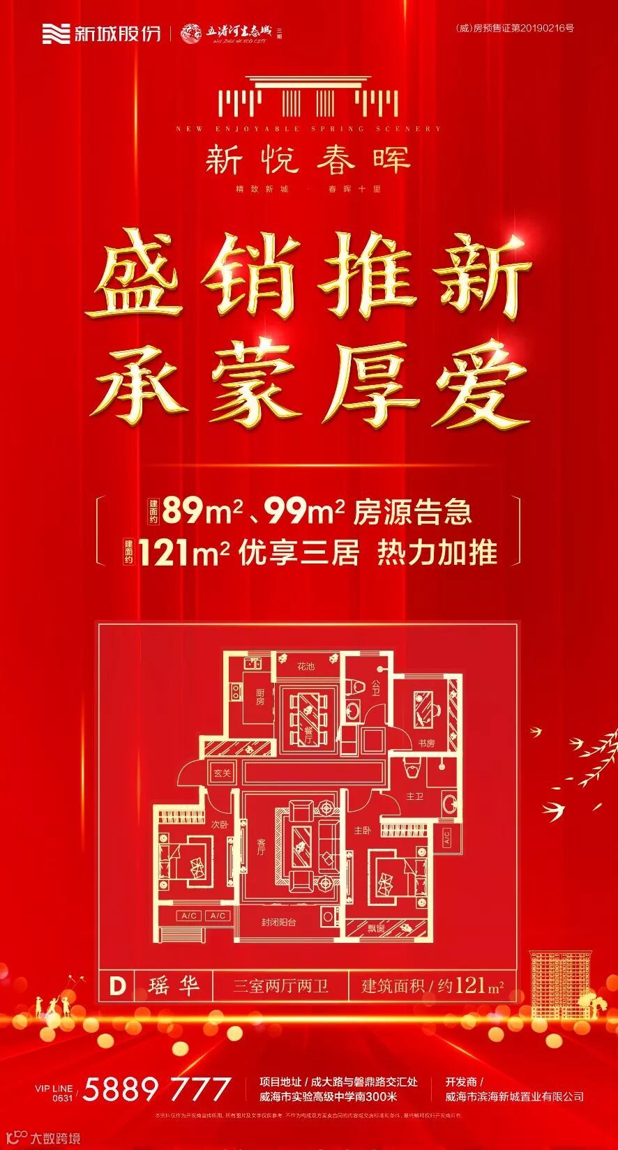 温馨提示:1、本项目推广名为“新悦春晖”,备案名为“新悦春晖小区”由“威海市滨海新城置业有限公司”开发;2、本资料为要约邀请,不作为要约或承诺;3、相关宣传内容不排除因政府相关规划、规定及出卖人分期规划、未能控制等原因而发生变化;4、出卖人可能会不定期对宣传材料进行修改;5、买卖双方的权利义务以双方签订的《商品房买卖合同》及附件等协议为准;6、部分图片、文字等内容源自网络,版权归原作者所有,本文只作为引用,如原作者表明身份要求本公司停止使用该素材,请及时与本司联系删除;7、本资料所发布的内容有效期截止至2019年12月,本公司保留对所发布资料修改的权利,敬请留意最新资料。