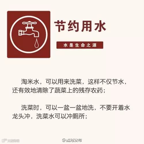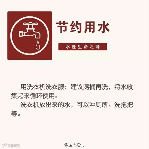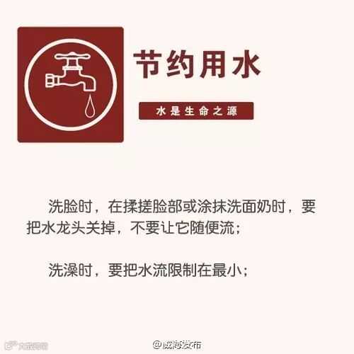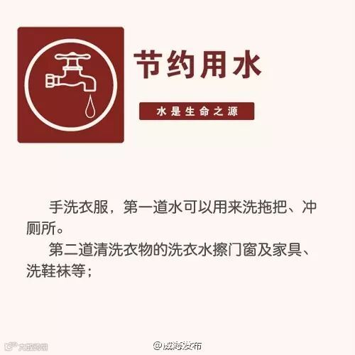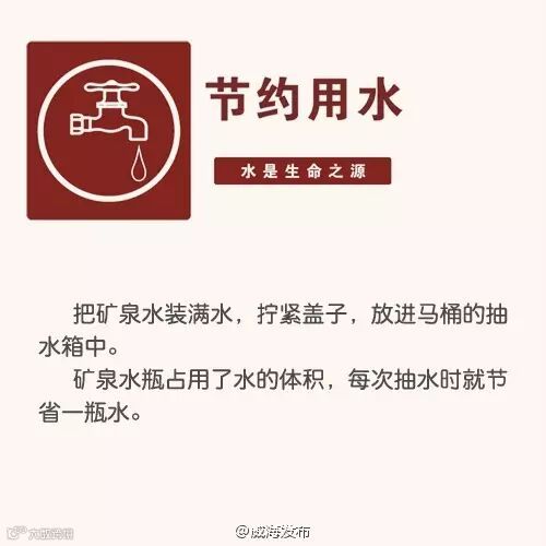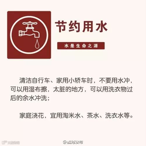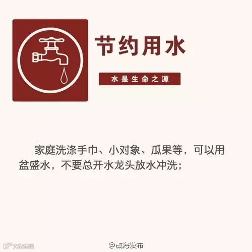 导读:节水问题一直在强调,面对每况愈下的供水危机,威海市民朋友,让我们从自身做起,从现在就行动起来!下列省水妙招,
