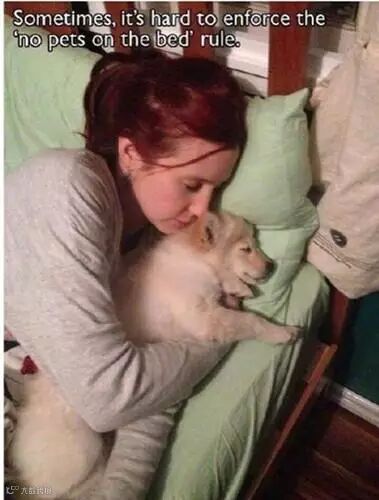 有时候实在很难遵守“宠物不能上床”的规则~