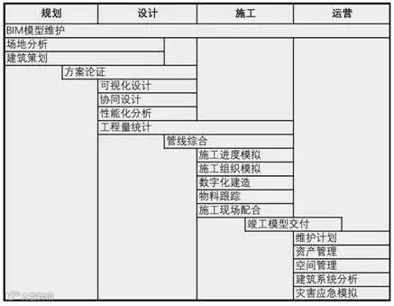 以下就项目前期策划阶段、设计阶段、施工阶段和运营阶段中BIM的应用进行一个概括性介绍: