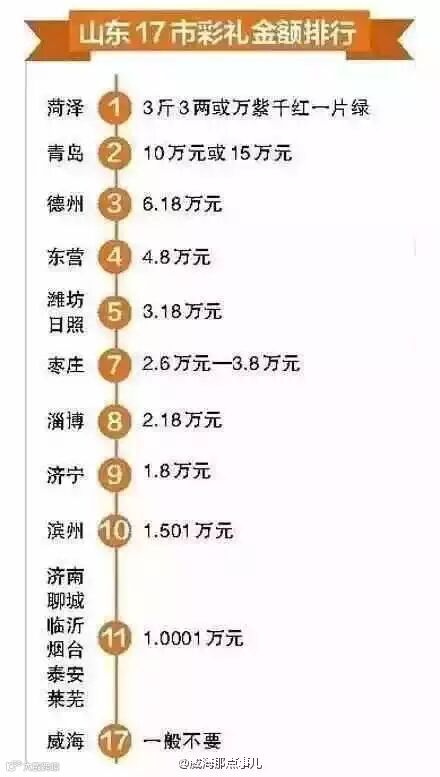 正域|山东17地市彩礼金额排行榜出炉,威海竟然……