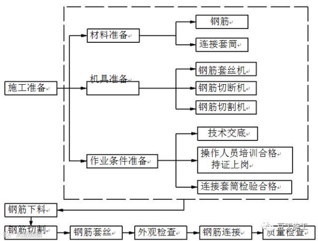 3)钢筋连接质量(施工单位保证),用扳手将直螺纹连接套与钢筋直螺纹丝头拧到位。