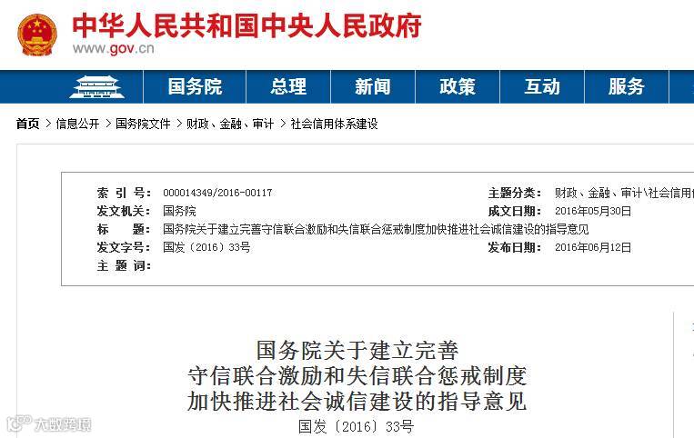 5月30日,国务院发文,要求完善失信联合惩戒制度,加快推进社会诚信建设。出借和借用资质投标、围标串标、工程质量、安全生产、恶意拖欠货款或服务费、恶意欠薪等列为联合惩戒的重点对象。 13