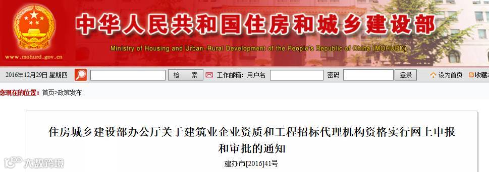 8月31日,住建部下发通知,自2017年1月1日起,由住建部审批的建筑业企业资质(含施工总承包特级)的新申请、升级、重新核定事项,实行网上申报和审批,不再受理纸质申请。 18