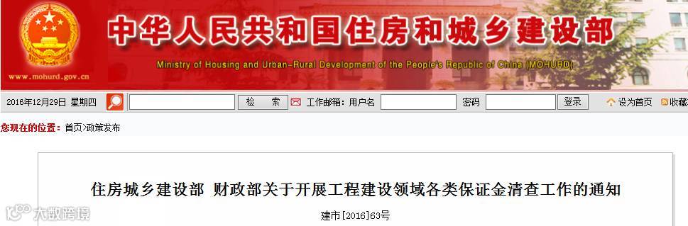 4月6日,住房城乡建设部、财政部联合下发《关于开展工程建设领域各类保证金清查工作的通知》。主要为了摸清建筑企业缴纳的保证金种类和金额,为下一步取消保证金做准备。 08