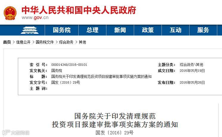 5月26日,国务院印发《清理规范投资项目报建审批事项实施方案》,进一步简化、整合投资项目报建手续工作,于建筑业相关的有9项变动。另外,未列入国务院决定保留的行政审批事项目录的,一律取消审批。 12
