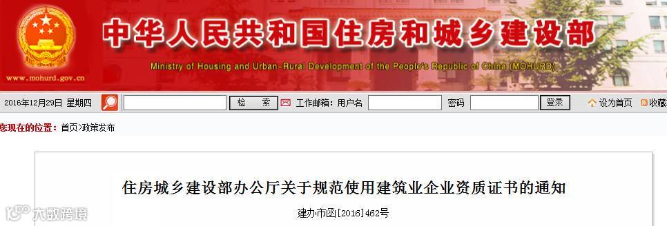 5月19日,住建部下发通知,要求:企业跨地区承揽业务监督管理、招标活动中,各有关部门和单位不得要求企业提供建筑业企业资质证书原件。 11