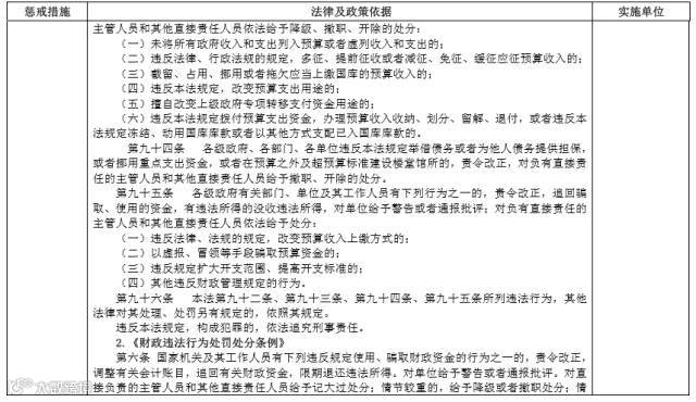 对失信责任主体违反预算管理法律法规和财经纪律的行为,按照《中华人民共和国预算法》、《财政违法行为处罚处分条例》 等有关法律法规严肃处理。