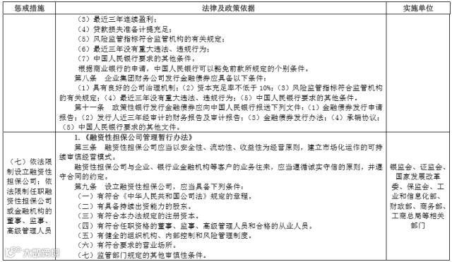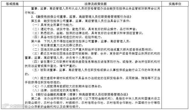 依法限制失信责任主体设立融资性担保公司;依法限制失信责任主体任职融资性担保公司或金融机构的董事、监事、高级管 理人员。