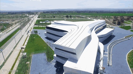银川当代美术馆座落于黄河西岸,位于宁夏回族自治区银川市华夏河图银川艺术小镇内,建筑面积约为15000平方米,四周环绕湿地公园。