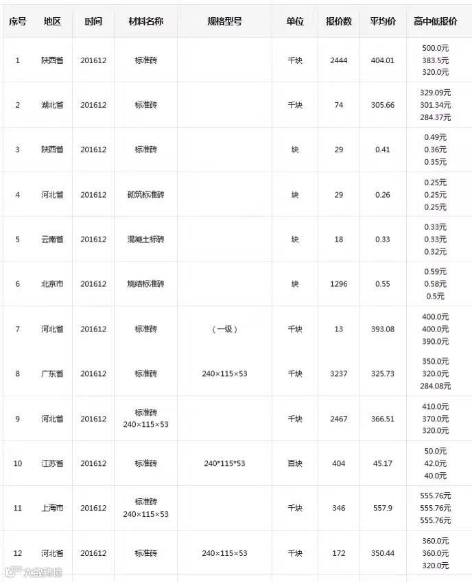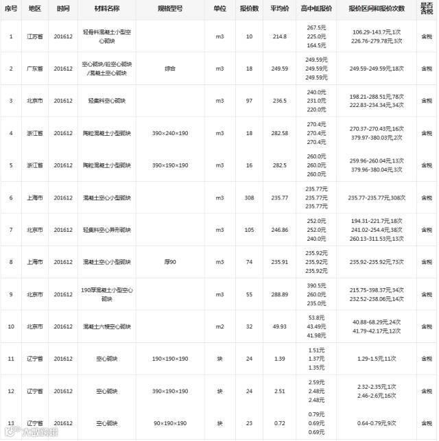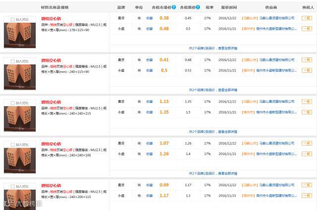 6)广材网大数据分析参考价范围:0.26~0.55(元/块,含税)
